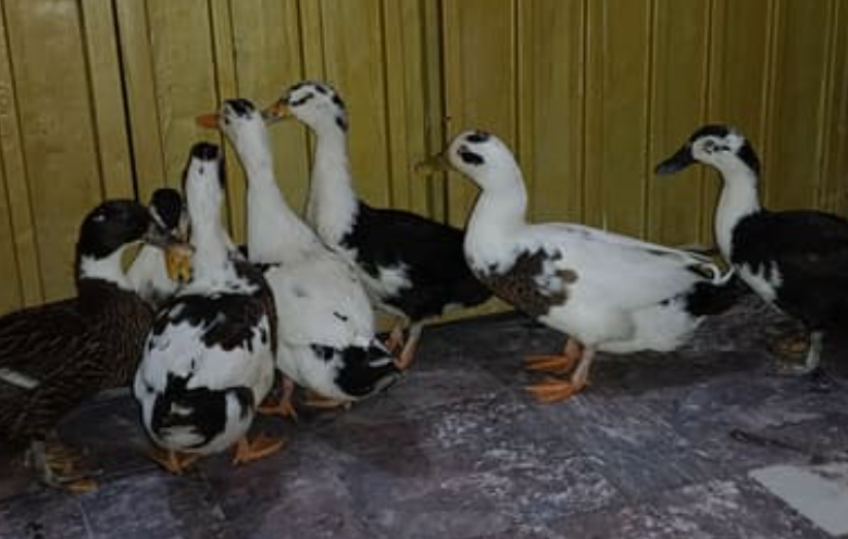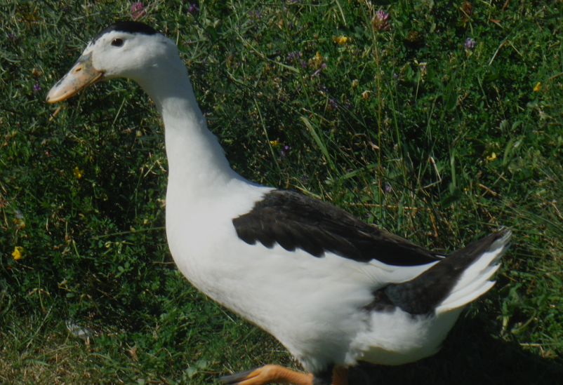 A hardy, medium-weight domestic duck known for its broken, mottled “piebald” or “broken” plumage, which is a random mixture of black and white. No two Anconas are marked exactly alike. They are valued as a good all-purpose utility duck.