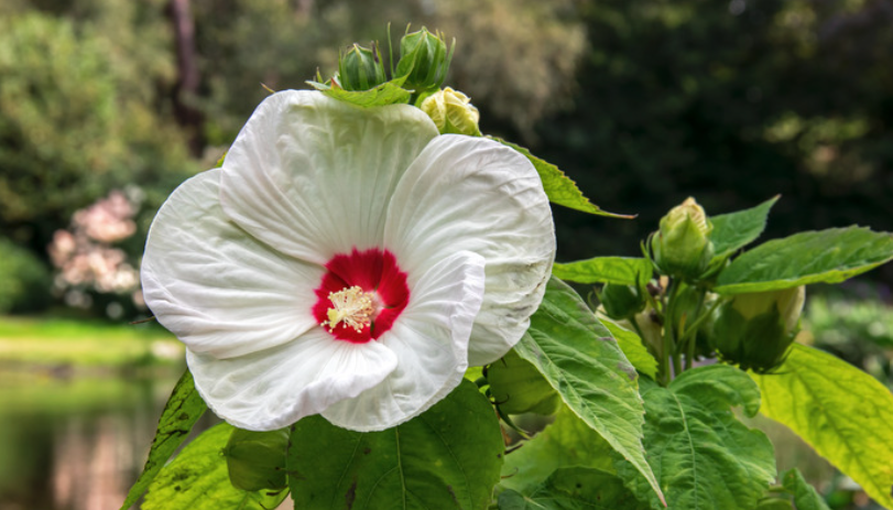 White Hibiscus (Hibiscus rosa-sinensis — white with red eye)