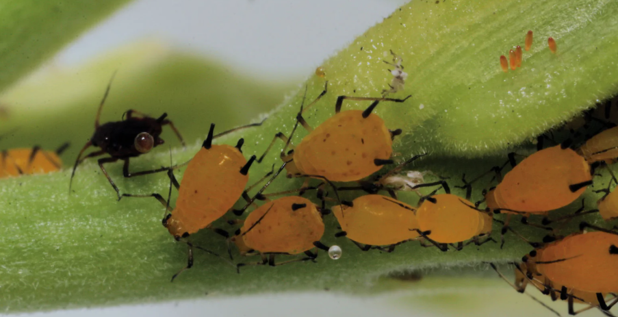Tiny parasitic wasps lay their eggs directly inside aphids. The developing larvae feed on the aphid’s internal organs, eventually killing the host and leaving behind a small, dry shell known as an “aphid mummy.” These wasps play a vital role in long-term aphid control and are widely used in integrated pest management (IPM) programs.