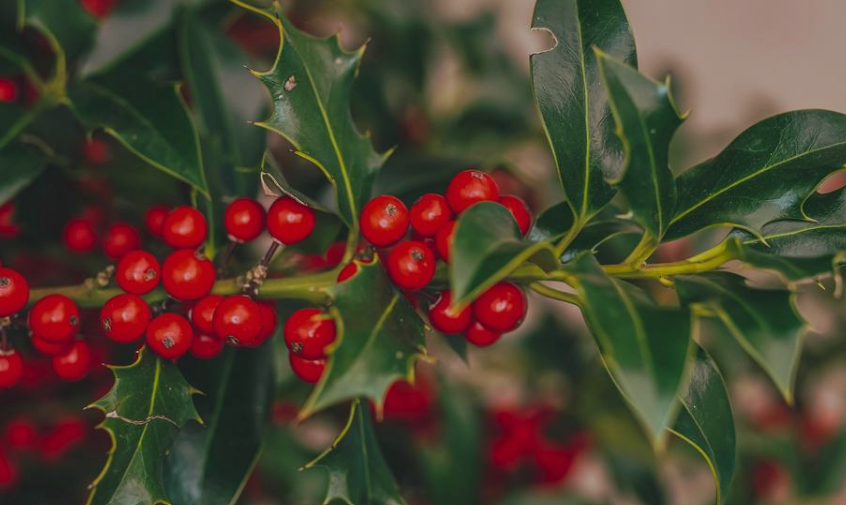 A classic symbol of winter, the bright red berries of the English Holly plant are mildly poisonous. Eating them can cause vomiting, diarrhea, and drowsiness. While a small number of berries may not cause serious harm, their consumption is strongly discouraged, particularly by children and pets.