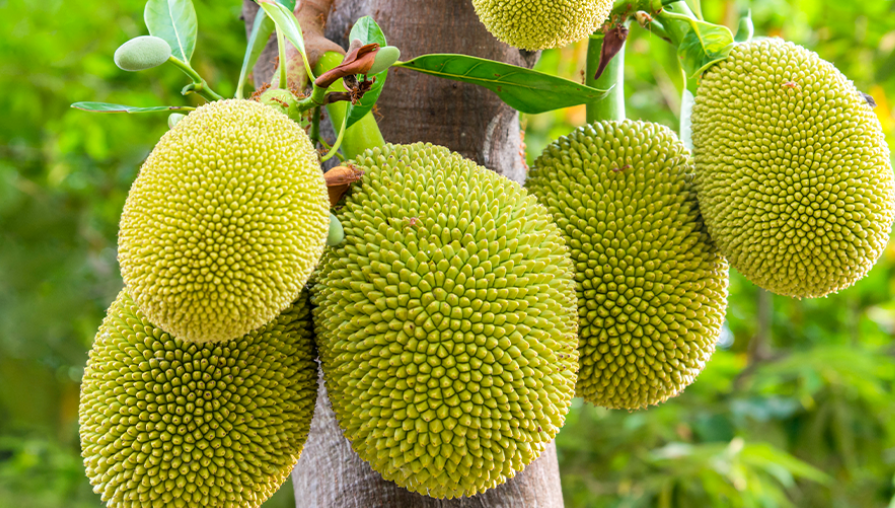 Dwarf Jack is not a specific cultivar but a category of compact trees that fruit at 2–3 meters tall. The fruits themselves are small to medium (3–5 kg) with a dark green, bumpy skin. The flesh is a bright yellow-orange, sweet, and crunchy with a fine texture. Because the tree is small, the fruits are easy to harvest without a ladder. Varieties like ‘Dwarf Golden’ and ‘Dwarf Taiwanese’ fall under this group, popular for urban and container gardening.