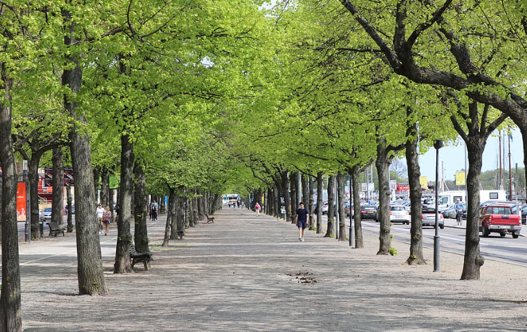 Linden trees are popular for roadside planting due to their uniform shape and fragrant flowers. They form dense canopies that offer good shade and are relatively easy to maintain. Their neat appearance suits formal street designs.