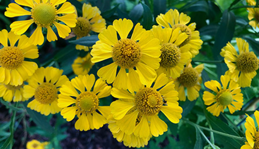 Sneezeweed is a bold, upright perennial of North American meadows and streambanks bearing masses of richly coloured, reflexed-petal daisy flowers in shades of red, orange, and deep yellow, each with a prominent, rounded, golden-brown to dark yellow central boss that dominates the flower and gives the plant its distinctive, slightly eccentric character. It flowers from midsummer through autumn and is outstanding for bees and butterflies that feed avidly on its pollen-rich central discs.