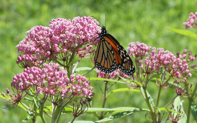 As its name suggests, swamp milkweed thrives in moist soils, wetland edges, and along stream banks. It produces attractive clusters of rose-pink to mauve flowers and grows in an upright, clumping form reaching up to four feet tall. It is an excellent garden plant for rain gardens and is highly attractive to monarch butterflies.