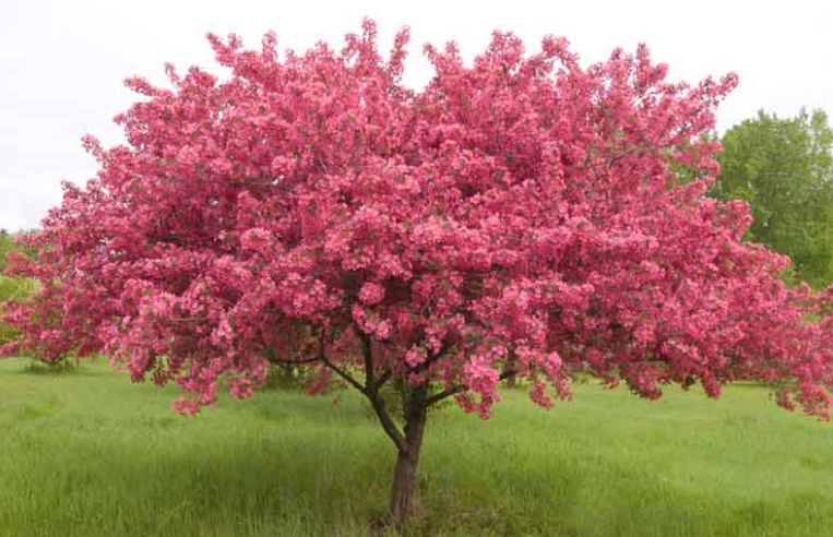 spring it produces a breathtaking display of bright magenta-pink flowers that contrast vividly against the dark foliage. Small, deep red fruits follow in late summer and persist well into winter, providing valuable food for birds. It grows to about 6 meters tall and is highly resistant to apple scab, rust, and fire blight, making it one of the most disease-resistant ornamental crabapples available.