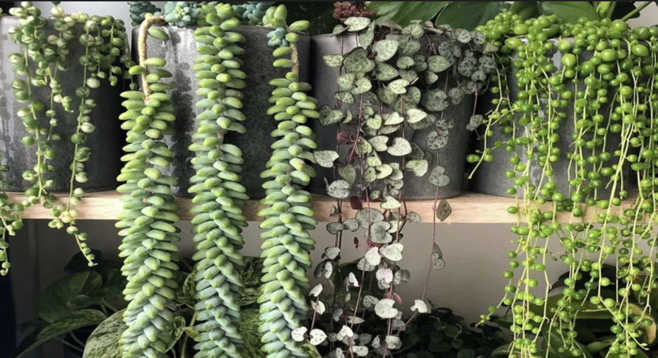In terms of display, these plants reward creativity. They look stunning alone in a simple ceramic or terracotta hanging pot, but they are equally beautiful when massed together at different heights to create a layered, jungle-like effect. The interplay of different leaf shapes, colours, and textures — some rounded and plump, others flat and sculptural — creates visual interest that changes with the light and the seasons. Outdoors, they soften walls, fences, and retaining edges with a naturalness that feels effortless.