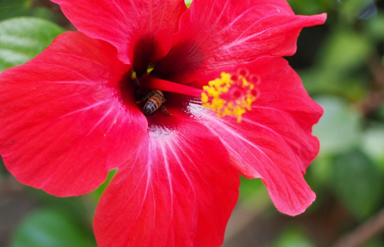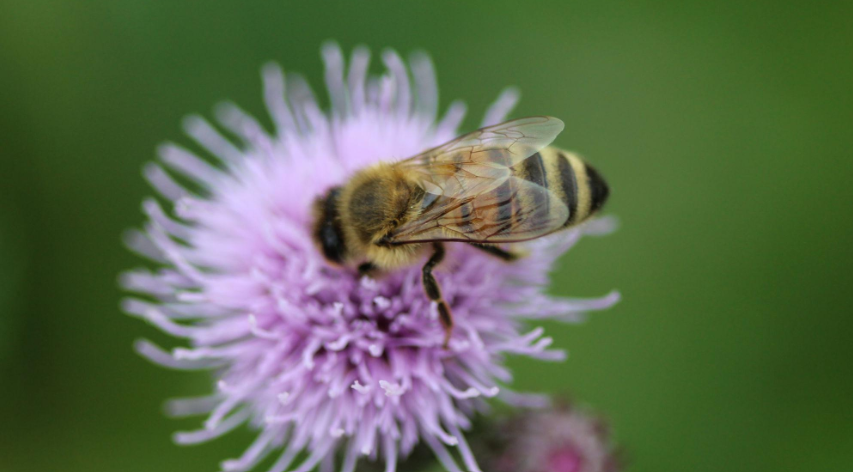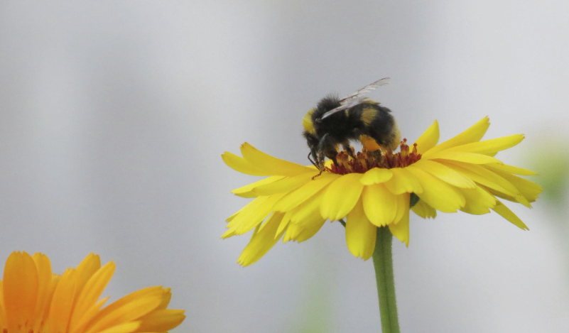 Bumblebee species are larger and fuzzier than honey bees, with bold black and yellow stripes. Their thick hair (setae) helps them collect pollen efficiently and stay warm in cooler climates. Bumblebees are excellent pollinators, especially for plants that require “buzz pollination.”