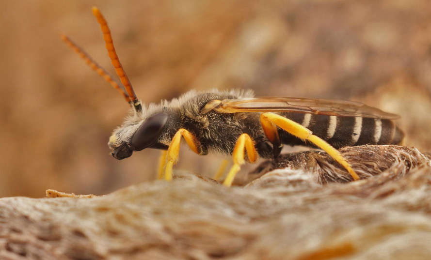 The Epeolus Bee has striking black-and-white or pale striped patterns that give it a unique, almost checkered appearance. These bees are parasitic, similar to cuckoo bees, and lay their eggs in the nests of other bee species. Their bold striping may mimic more aggressive insects, helping deter predators. Although they do not gather pollen themselves, they still play a role in the broader ecological web of bee communities.