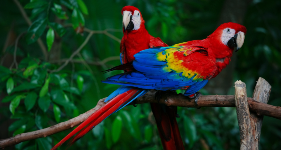 Scarlet macaws, vibrant red parrots of Central and South American rainforests, can live up to 90 years in captivity, though wild birds average 40-50 years due to threats like pet trade. With wingspans up to 4 feet, they crack nuts with powerful beaks and travel in noisy flocks, nesting in tree hollows; their intelligence allows mimicry and problem-solving, but deforestation has made them vulnerable.