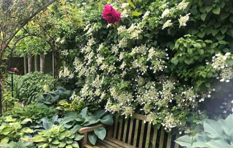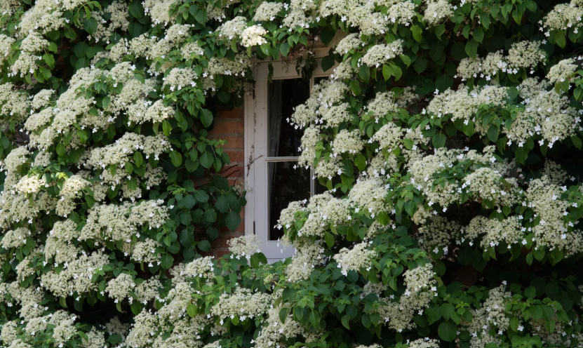 Climbing hydrangea is widely used to cover exterior walls of buildings, especially brick or stone surfaces. Its dense foliage and self-clinging habit soften harsh architectural lines and add a natural, green façade over time. - Shaded Fence Decoration
