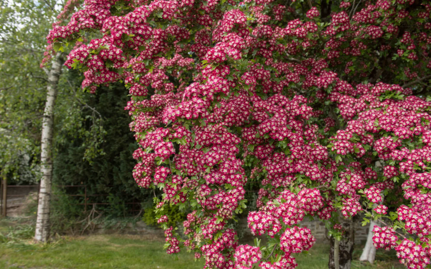 These small trees produce clusters of white or pink flowers in spring. The blooms have a foul, fishy or rotting-flesh smell, sometimes linked historically to the plague due to its corpse-like odor. It attracts flies and beetles for pollination.