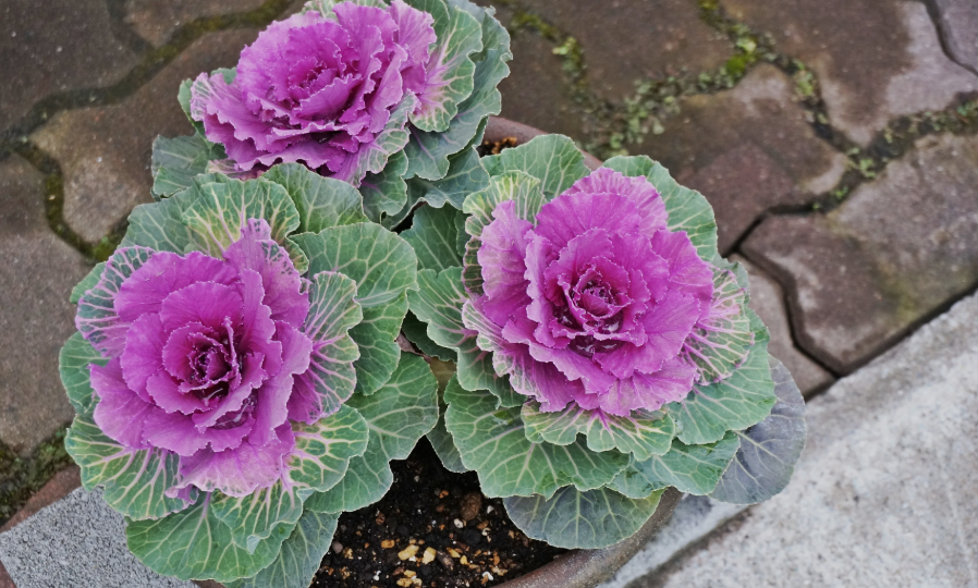 Ornamental cabbage originates from Europe and Asia and is bred specifically for decorative use. While technically not a true flower, its colorful, layered leaves closely resemble a blooming cabbage rose. These plants thrive in cool weather and are popular in gardens and landscaping displays.