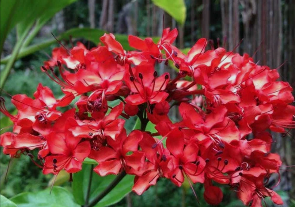 - Clerodendrum paniculatum – Known as the pagoda flower, producing large pyramidal clusters of orange-red blooms.