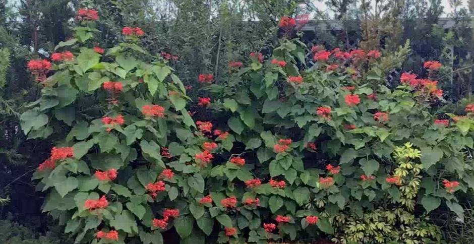- Clerodendrum splendens – A vigorous climbing species with bright red flower clusters.