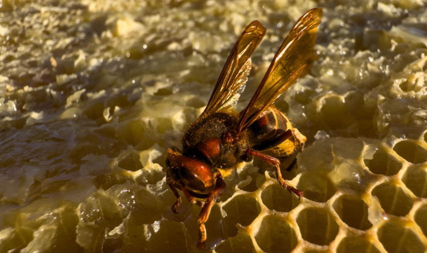 Rather than launching mass colony attacks, it typically preys on lone foragers, biting off their wings and legs before carrying the protein-rich thorax back to its nest. Beekeepers in affected regions often use entrance reducers on hives to limit the hornet’s ability to pick off bees one by one.