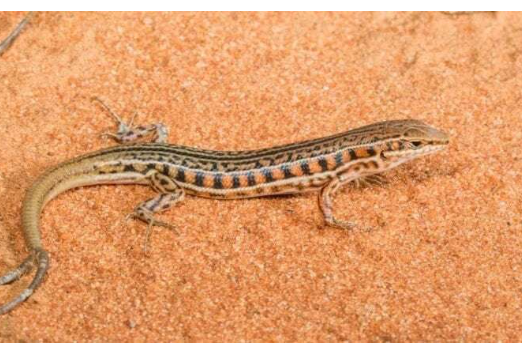 Known for “swimming” through desert sand, the Sandfish Skink can shed its tail to escape a predator’s grasp. It will subsequently regenerate a new tail, which is essential for maintaining its hydrodynamic shape and balance during its unique subsurface locomotion.