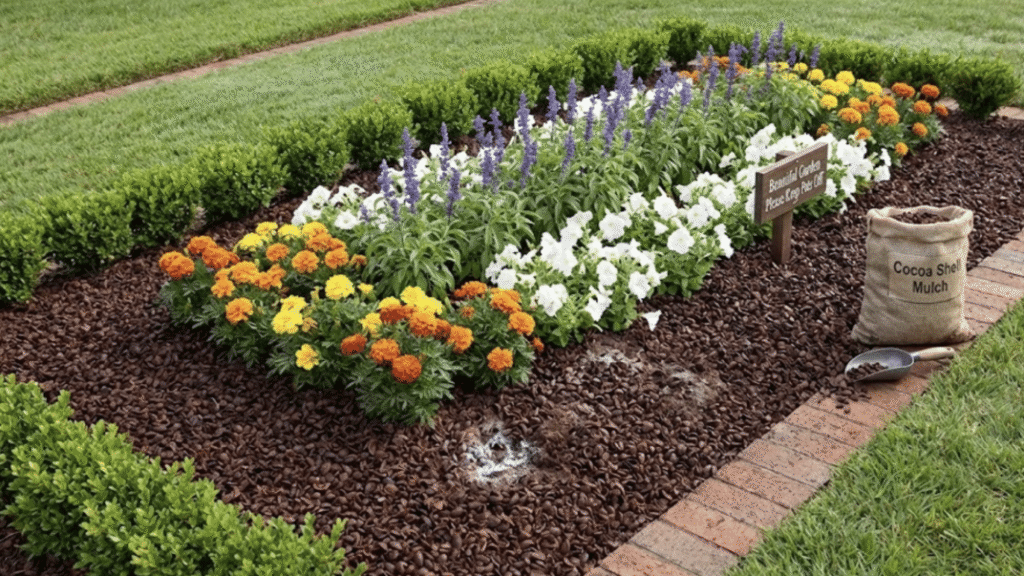 Cocoa bean hulls are an attractive mulch that helps retain moisture and suppress weeds around roses. They slowly decompose, adding organic matter and enriching the soil. Their fine texture and dark color also enhance the visual appeal of rose beds.