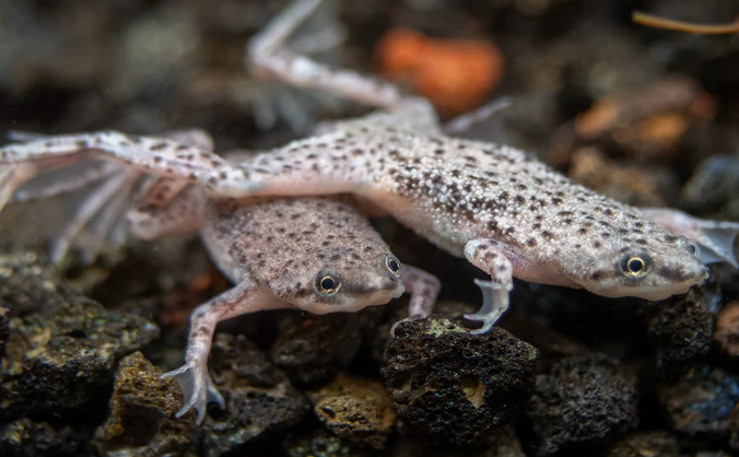 These frogs are excellent swimmers thanks to their webbed feet and streamlined bodies. They use gentle kicking motions to move through the water and often come up to the surface to breathe air. Because of this, aquariums should always have easy access to the surface and should not be too deep or crowded. They also enjoy having plants, hiding spots, and open swimming areas to feel secure and active.