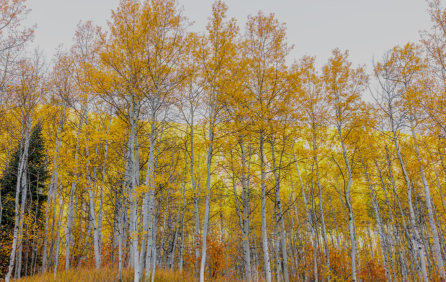Quaking Aspen grows 2–3 feet per year and reaches 40–50 feet. It spreads via root suckers, forming large groves. Its trembling leaves and white bark create visual interest, and it is highly adaptable to Zone 2 conditions.