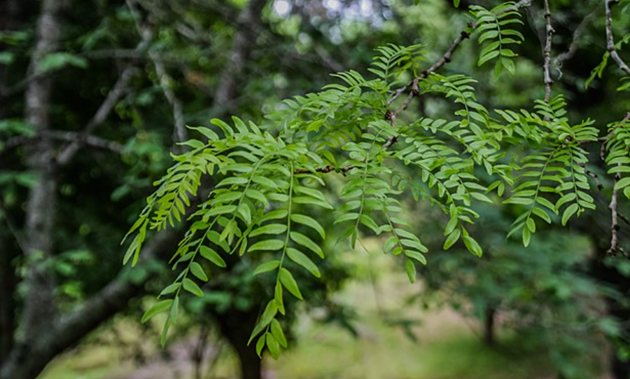 Honey locust features finely divided, pinnate leaves that resemble ferns. The tree provides dappled shade and has an open, airy canopy. It tolerates a wide range of soils and urban conditions. Its small leaflets reduce wind resistance and add texture to landscapes.