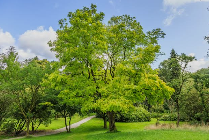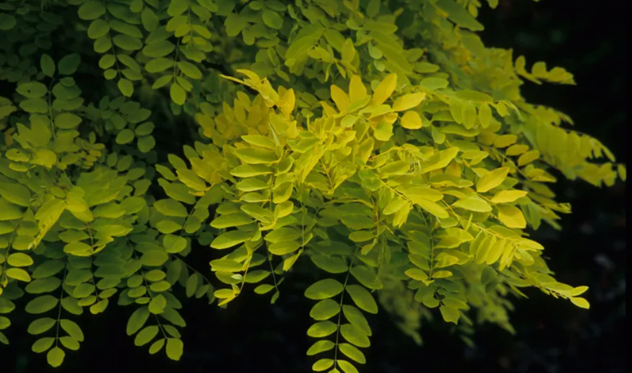 The golden locust produces bright lime-green, fern-like leaves that glow in sunlight. This deciduous tree grows quickly and can reach medium to large sizes, providing dappled shade. Its vibrant foliage adds a fresh, lively look to parks and streetscapes.