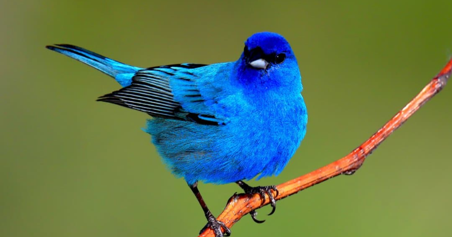 The Indigo Bunting is a small but breathtaking songbird whose male is covered almost entirely in brilliant, iridescent indigo-blue plumage that seems to glow in sunlight. Found across eastern North America, it frequents brushy fields, woodland edges, and roadsides during the breeding season. Despite its jewel-like appearance, the male’s blue is not produced by pigment but by microscopic structures in its feathers that refract light.