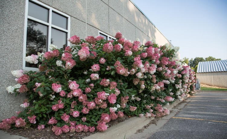 This hydrangea is commonly planted near buildings to soften architectural lines. Its vibrant blooms and manageable shape make it ideal for enhancing home exteriors without overwhelming the space. - Hedge or Informal Screening