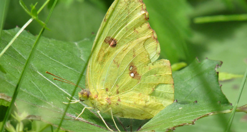 One of the most common yellow butterflies in North America, the Clouded Sulphur features soft, pale yellow wings edged with dark borders. It is frequently spotted in open meadows, clover fields, and roadsides. The female sometimes appears in a white form, making it a species with notable sexual dimorphism.